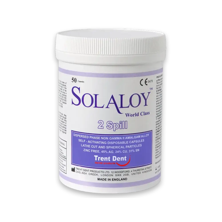 این محصول با استفاده از ترکیبات با کیفیت بالا و فاقد زینک می باشد. آمالگام کپسولی سولالوی ورلد کلس (SOLALOY World Class) دارای ذرات کروی و تراشیده است که باعث افزایش مقاومت در برابر فشار و سایش می شود. Solaloy World Class با سازگاری حاشیهای فوقالعاده، امکان تراش آزاد و هموار این ماده ترمیمی تا سطح انسداد را فراهم میکند. این ماده ترمیمی دارای ضریب خزش استاتیکی بسیار پایین و استحکام اولیه بالا است، بنابراین میتوان حاشیههای قوی را بدون شکستگی ایجاد کرد و خطر شکستگیهای تودهای در ساعات اولیه پس از ترمیم کاهش مییابد.